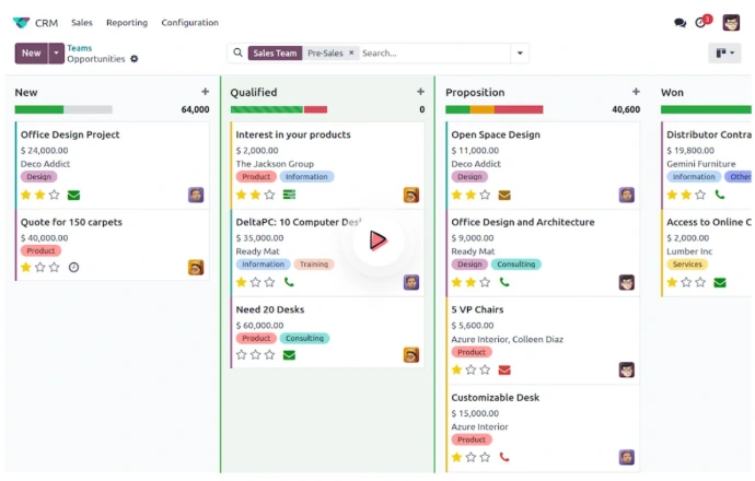 Odoo CRM ist das ideale Tool, um deine Vertriebsziele zu erreichen. Behalte den Überblick über deine Leads, erhalte präzise Vorhersagen und fokussiere dich auf das Wichtigste: den erfolgreichen Abschluss von Geschäften.